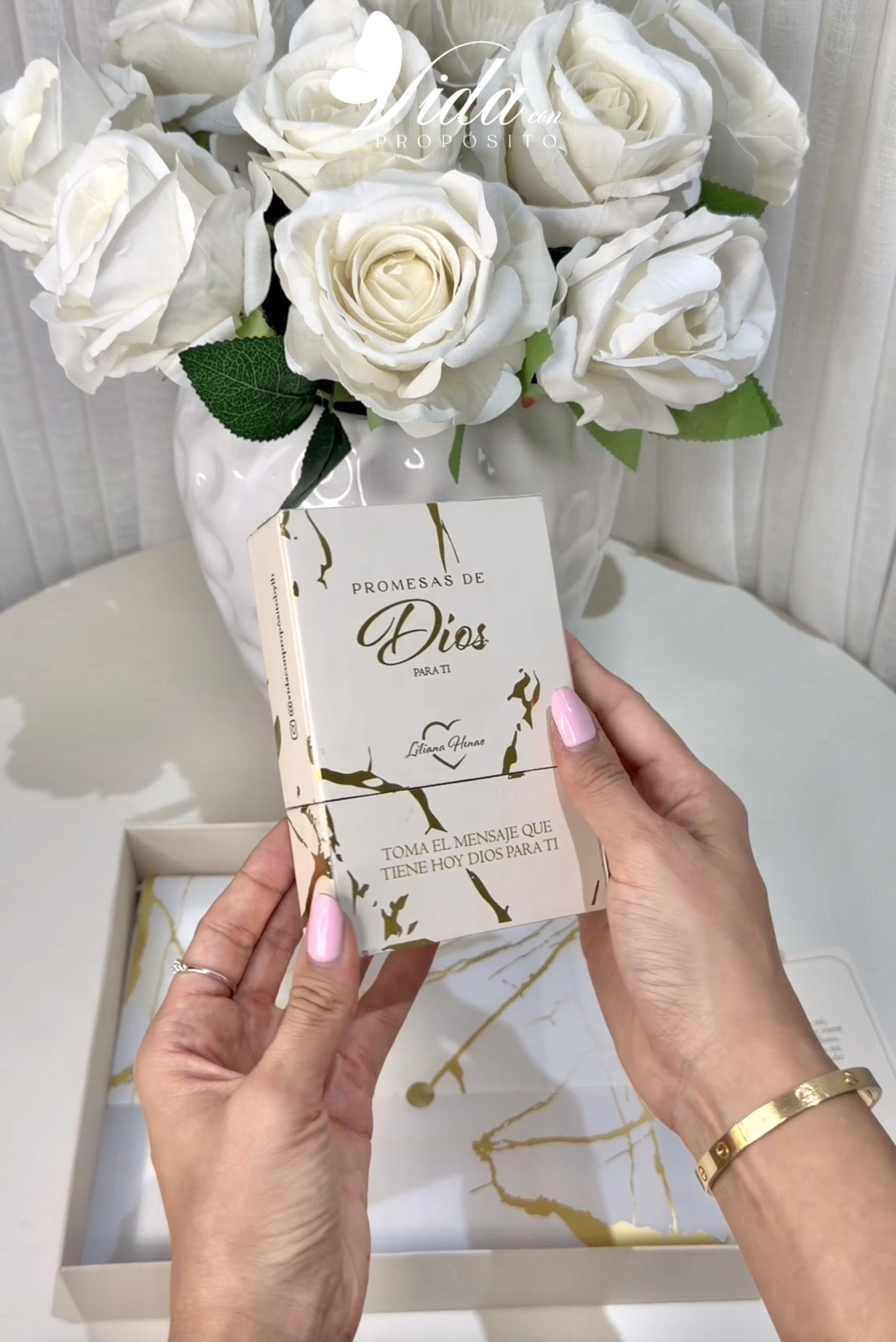 Este hermoso set contiene 50 promesas poderosas, cada una con una frase que toca el corazón y una explicación que te abraza justo donde más lo necesitas. Son mensajes pensados para: